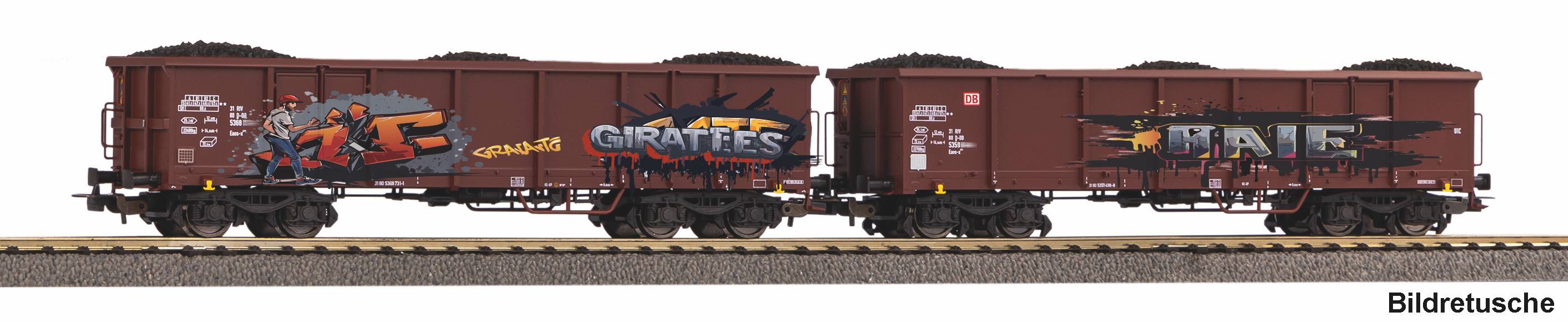 2er Set Offene Güterwagen Eaos DB AG VI mit Graffiti und Kohleladung