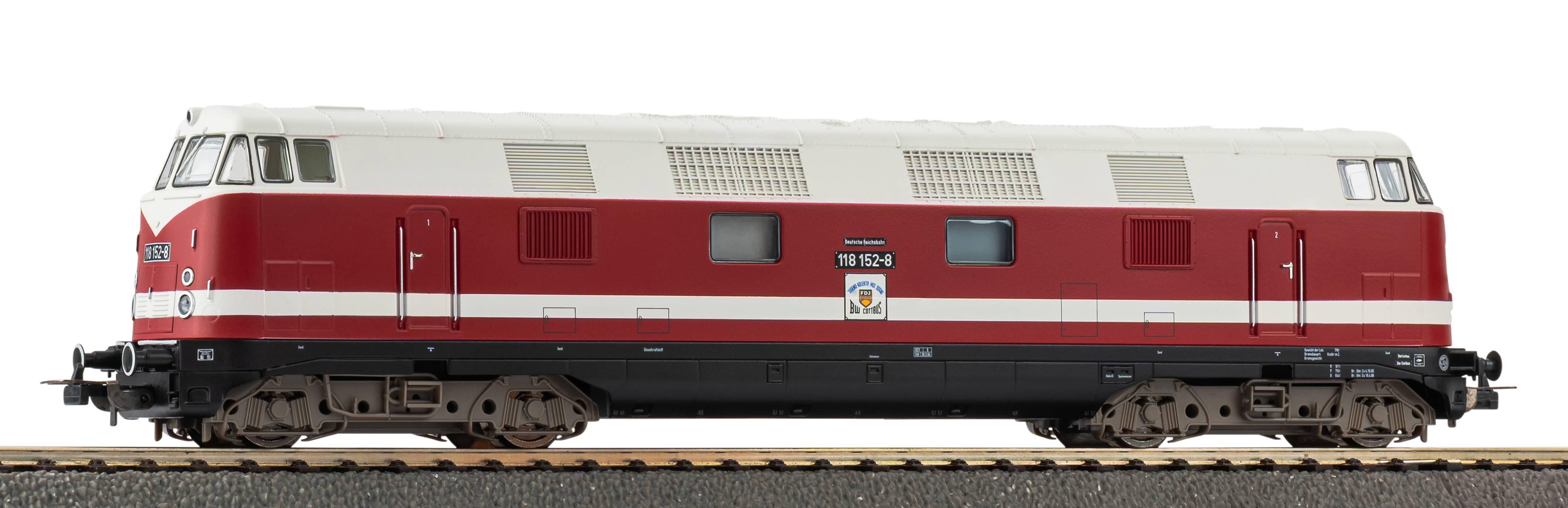 Neuheit 2025: Die BR 118 in FDJ Ausführung der DR in Epoche IV. Die PluX22-Schnittstelle ermöglicht das Nachrüsten mit einem Decoder und Sound mit größtmöglichem Lautsprecher.
