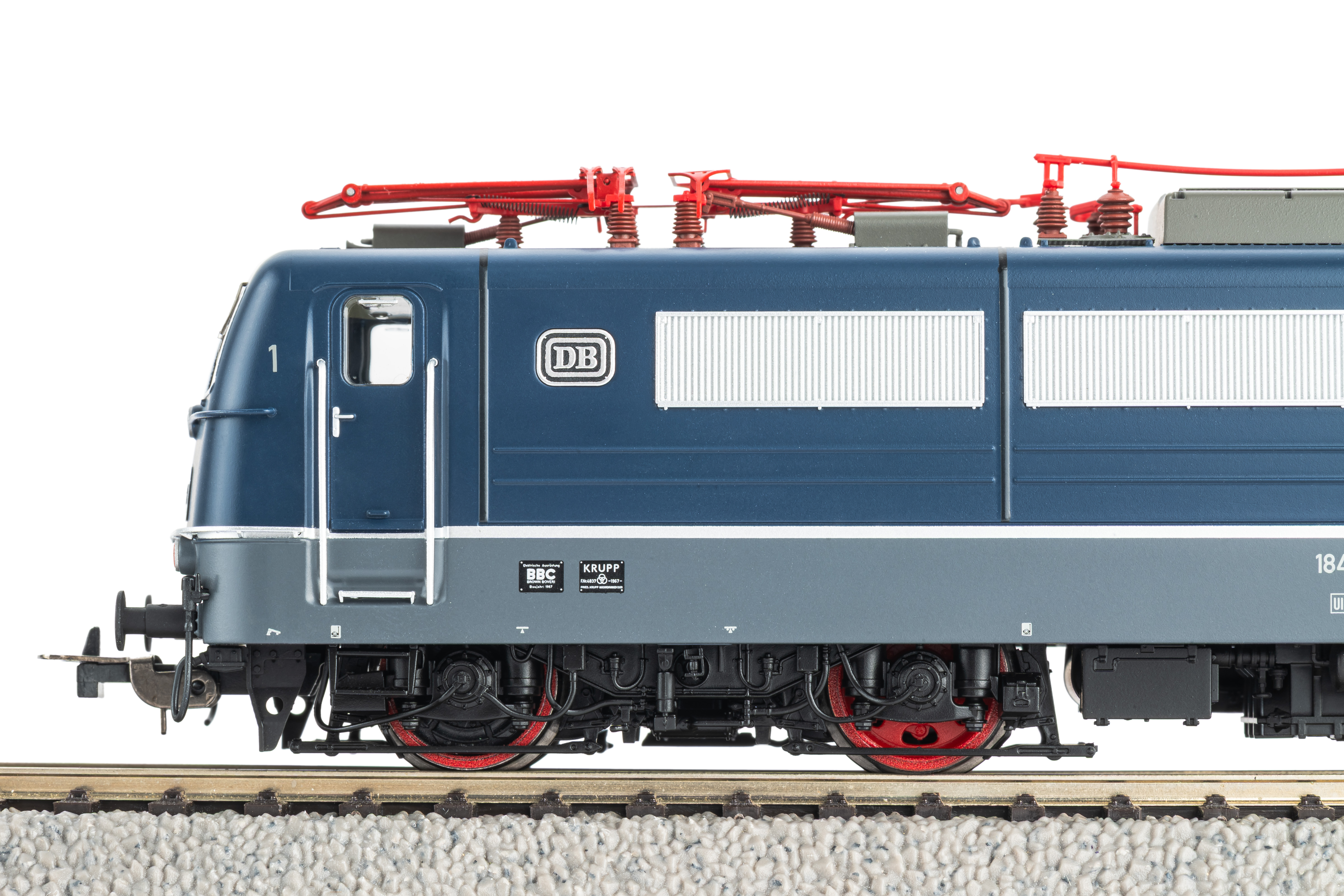 Neuheit 2026: Mit der BR 184.1 der DB in der Epoche IV bringt PIKO die als Europa-Lok bekannt gewordenen Maschinen auf die H0 Gleise. Ausgestattet für verschiedene Stromsysteme in Deutschland, Frankreich, Belgien und Luxemburg erleichterten die Maschinen den grenzüberschreitenden Verkehr merklich. Die PIKO Konstruktion setzt der Lokomotive ein würdiges Denkmal. Beim Blick auf den detaillierten Dachgarten fallen direkt die feingliedrigen Stromabnehmer aus Metall ins Auge, welche ohne sichtbare Verschraubungen auf dem Lokdach montiert wurden. Die Seitenflächen werden durch feine Gitter und Gravuren geprägt. Durch die Tür im Führerstand fällt der Blick in den detailliert nachgebildeten Maschinenraum, welcher durch eine stimmige Beleuchtung ideal in Szene gesetzt wird. Auch die Führerstandbeleuchtung ist digital schaltbar. Beim Blick unter den Lokkasten präsentieren sich die Drehgestelle mit zahlreichen, separat angesetzten Bauteilen. Abgerundet wird der Gesamteindruck durch die saubere Lackierung und die konturenscharfe Bedruckung.Das PIKO Expert-Modell verfügt über eine PluX22 Schnittstelle zum unkomplizierten Nachrüsten eines Decoders.