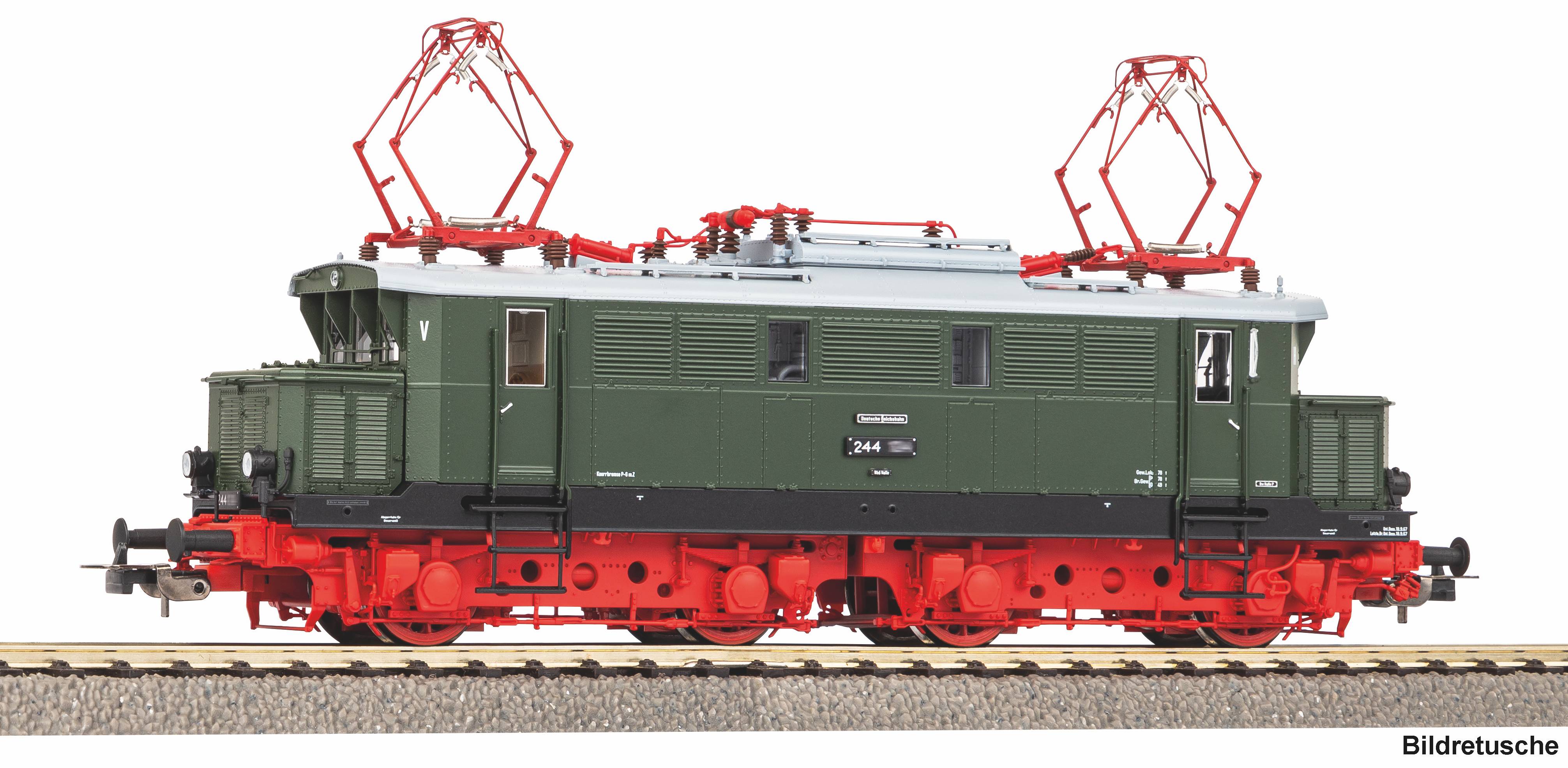 Neuheit 2026: Druckvariante der BR 244 der DR in grüner Farbgebung mit roten Drehgestellen der Epoche IV. Für eine unkomlizierte Nachrüstung eines Decoders verfügt das Modell über eine moderne PluX22-Schnittstelle.