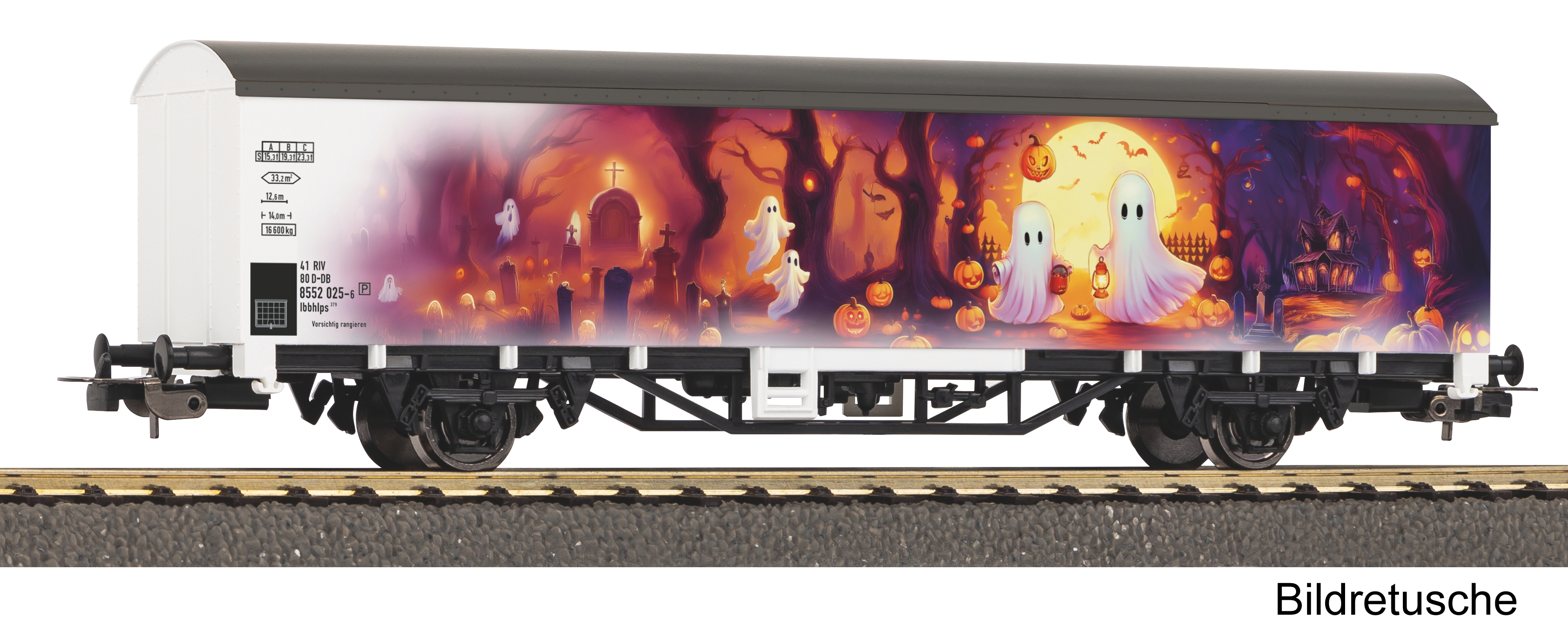 Pünktlich zur herbstlichen Jahreszeit präsentiert PIKO einen ganz besonderen H0 Sonderwagen: einen gedeckten Güterwagen mit exklusiver Halloween-Bedruckung, liebevoll gestaltet mit typischen Motiven der Gruselsaison.