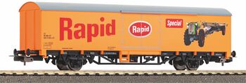 Neuheit 2021:Druckvariante des Gedeckten Güterwagens mit attraktiver Werbung für Hürlimann Traktoren zugehörig zur SBB in der Ausführung der Ep. VI.