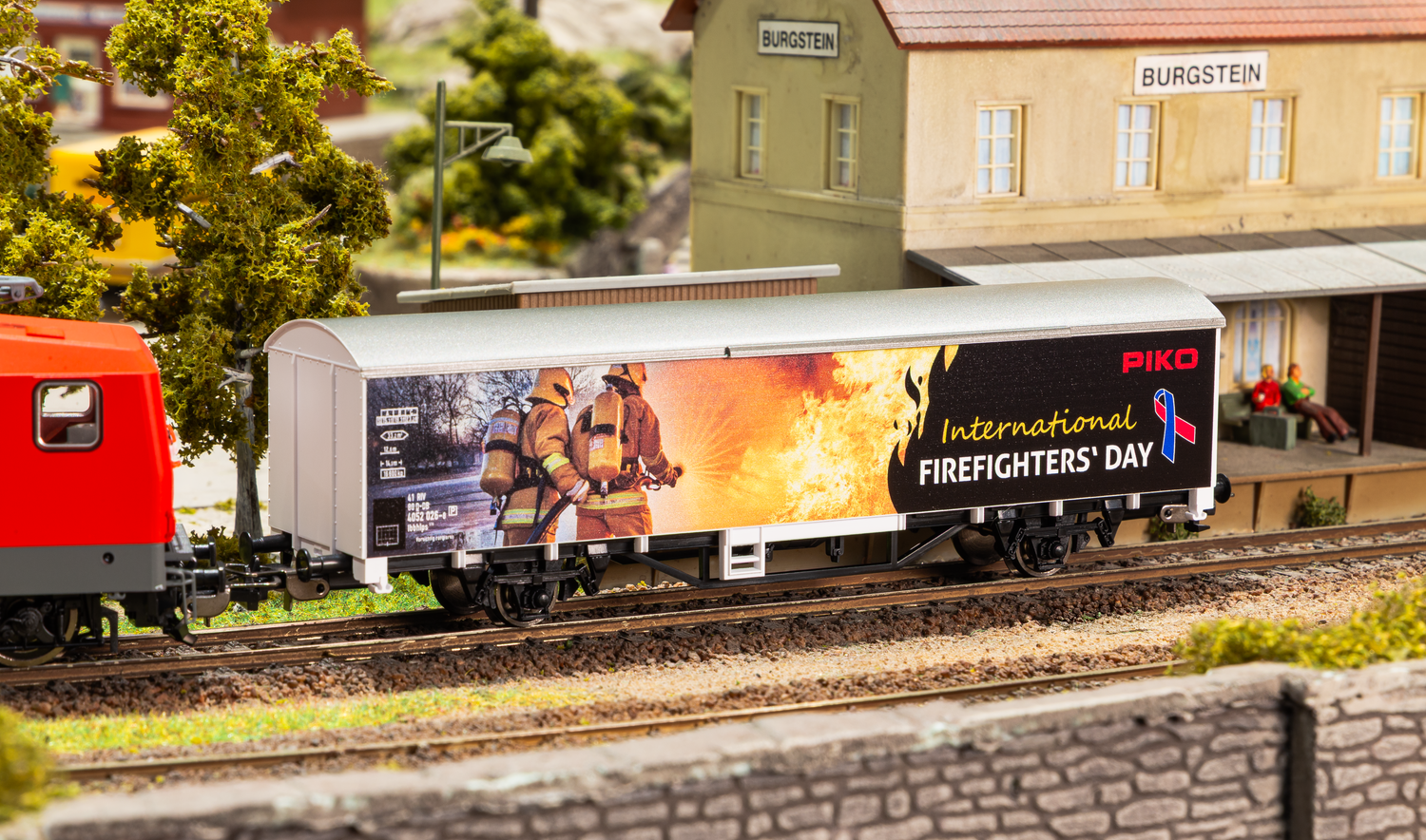 Sondermodell 2026: Exklusiver H0-Sonderdruckwagen anlässlich des Internationalen Tages der Feuerwehrleute am 04.05.2026. Der gedeckte Güterwagen würdigt den täglichen Einsatz, die Professionalität und die gesellschaftliche Bedeutung der Feuerwehrkräfte und setzt zugleich ein Zeichen für die Förderung des Feuerwehrnachwuchses.