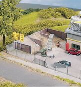 Das Ziel vieler Modellbahner: Endlich ein Betonwerk für die PIKO-Zementsilowagen! Mit dem H0-Bausatz nach dem Vor-bild der Firma Main-Beton geht dieser Wunsch in Erfüllung. In den Silos werden die verschiedenen Sorten an Fertigbeton gelagert. Sie können von dort mit den Mischfahrzeugen abgeholt werden.