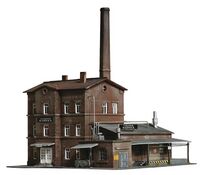 Die in Ziegelsteinbauweise errichtete Fabrik ist mit vielen typischen Fabrikaccessoires ausgestattet. An der Gebäudefront ist ein Kessel, der von den Arbeitern durch ein filigran gearbeitetes Gerüst erreicht werden kann. Auf der Rückseite befinden sich 4 Tanks zur Lagerung des Lackvorrates und der Altlacke, die durch fein nachgebildete Rohrleitungen direkt mit dem Gebäude verbunden sind. Durch ein aufwendiges Lüftungssystem auf dem Dach wird für die Belüftung des teilweise gealterten Modells gesorgt.