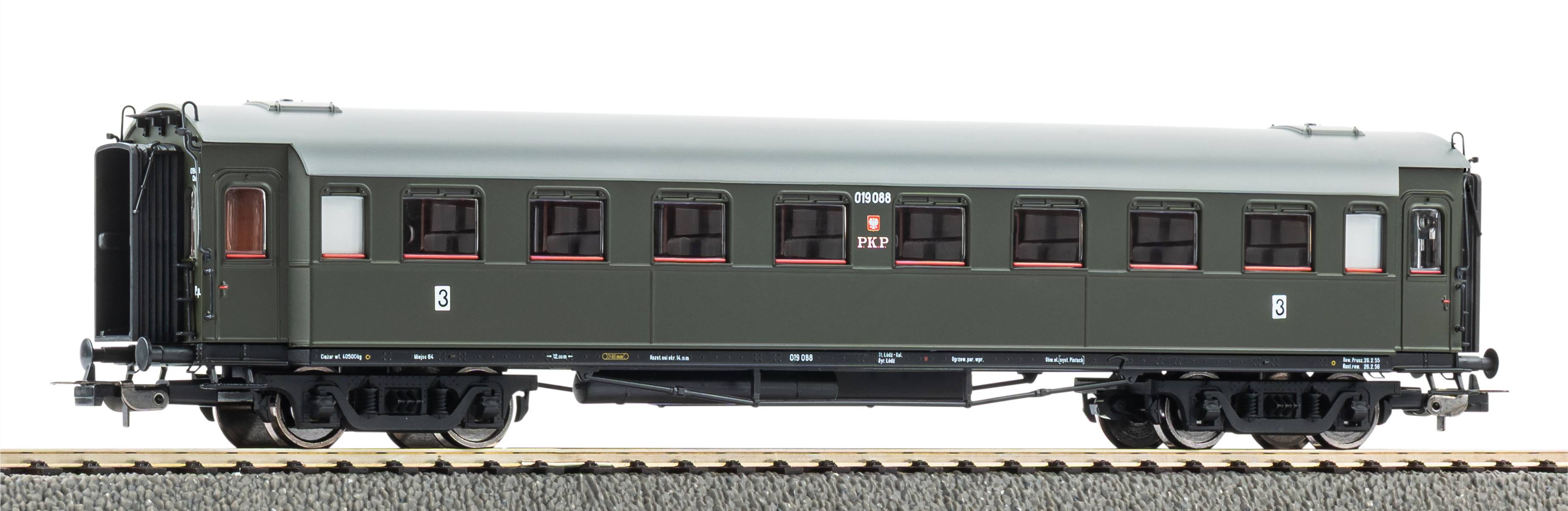 Neuheit 2025: Schnellzugwagen der PKP in Epoche III. Das Modell überzeugt durch feine Gravuren, zahlreiche freistehend montierte Teile und exzellente Rolleigenschaften.