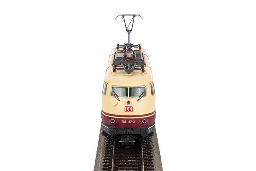 Neuheit 2023: Formvariante der BR 103 als kurze Ausführung der DB AG in Epoche V. Auch über 50 Jahre nach ihrem Erscheinen gehören die legendären Kultlokomotiven der BR 103 dank ihres zeitlosen Erscheinungsbildes zu den optischen Highlights auf deutschen Bahnstrecken und sorgen für viel Aufmerksamkeit. Das Modell überzeugt gleichermaßen durch einen schweren Metalldruckgussrahmen mit fein detailliertem Gehäuse, feinste Lackierung und Bedruckung und filigranen Metall-Pantographen. Der fünfpolige, kugelgelagerte Motor sorgt mit zwei Schwungmassen für ausgezeichnete Fahreigenschaften. Der LED-Lichtwechsel erfolgt fahrtrichtungsabhängig weiß/rot und ist wie die Führerstandsinnenbeleuchtung mit dem werkseitig integrierten PluX22-Decoder digital schaltbar. Das Modell verfügt zudem über einen Lautsprecher mit größtmöglicher Membranfläche für optimale Sounderlebnisse. Bremsschläuche zum Nachrüsten liegen bei. Lok in authentischer Farbgebung der Epoche V mit ausgeblichenen Stellen