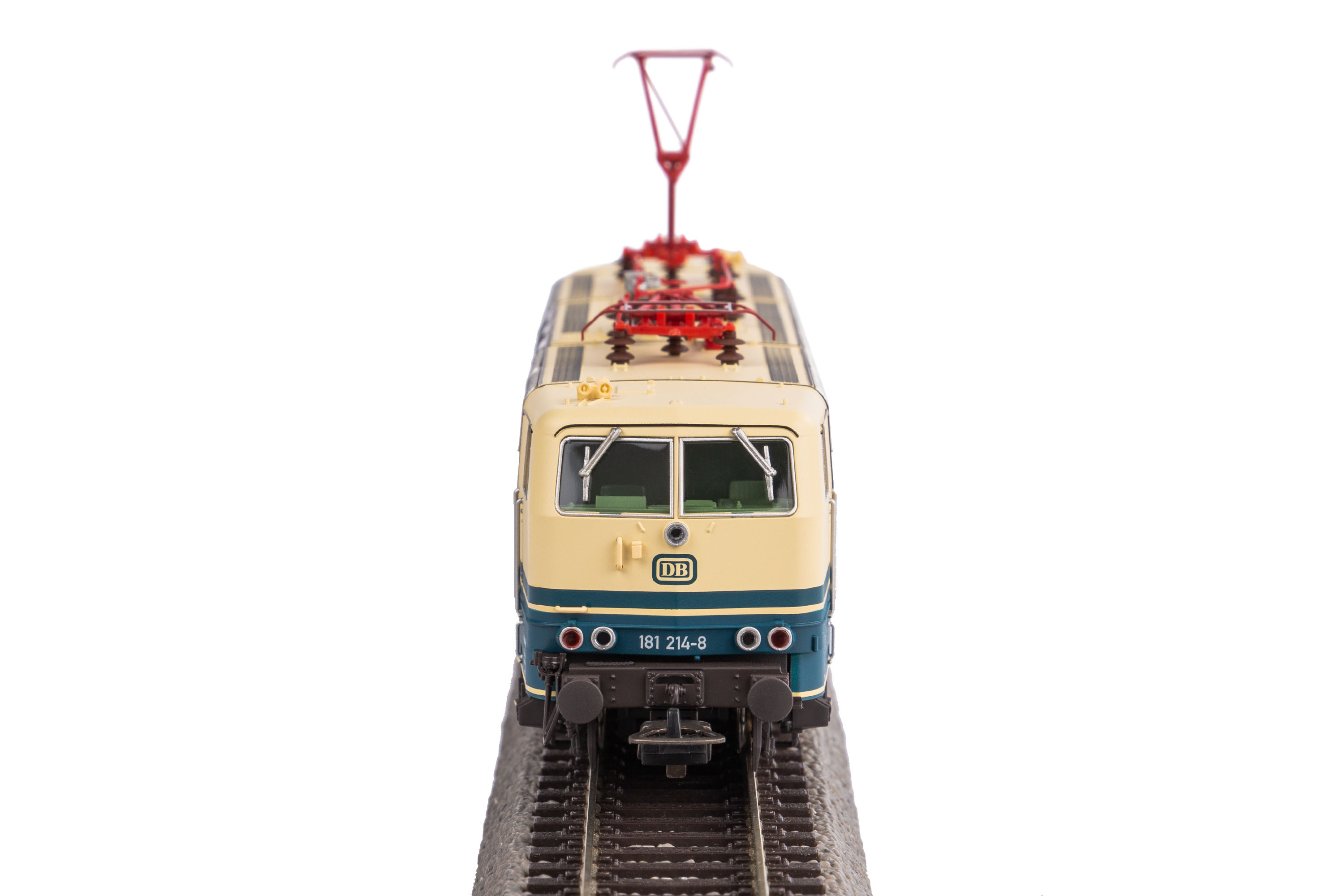 Neuheit 2022: Variante der BR 181.2 der DB mit Bedruckung Mosel der Epoche IV. Das PIKO Modell der wichtigen Mehrsystem-Lokbaureihe 181.2 zeigt alle relevanten Details seines Vorbildes auf und überzeugt durch feinste Lackierung und Bedruckung, erhabene Namensschilder auf den Seiten, extra angesetzte Frontgriffe und Türgriffstangen, scharf gravierte Drehgestellblenden, feine Isolatoren und Stromabnehmer mit unterschiedlichen Schleifstücken. Die Beleuchtung erfolgt mittels LEDs. Die serienmäßig eingebaute Führerstands- und Maschinenraumbeleuchtungen sind hierbei wie die fahrtrichtungsabhängig funktionierenden Schlusslichter mit PluX22 Decoder digital schaltbar. Ein starker fünfpoliger Motor mit Schwungmassen, der alle vier Achsen antreibt, sorgt für hervorragende Fahreigenschaften. Das schwere PIKO Modell verfügt über zwei Haftreifen und einen schweren Zinkdruckgussrahmen für große Zugkräfte.