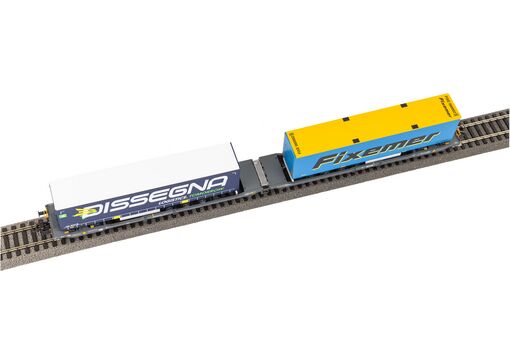 Neuheit 2024: Taschenwagen T3000 von Hupac in Epoche VI. Das Modell ist mit jeweils einem Auflieger von Dissegna und Fixemer ausgestattet.