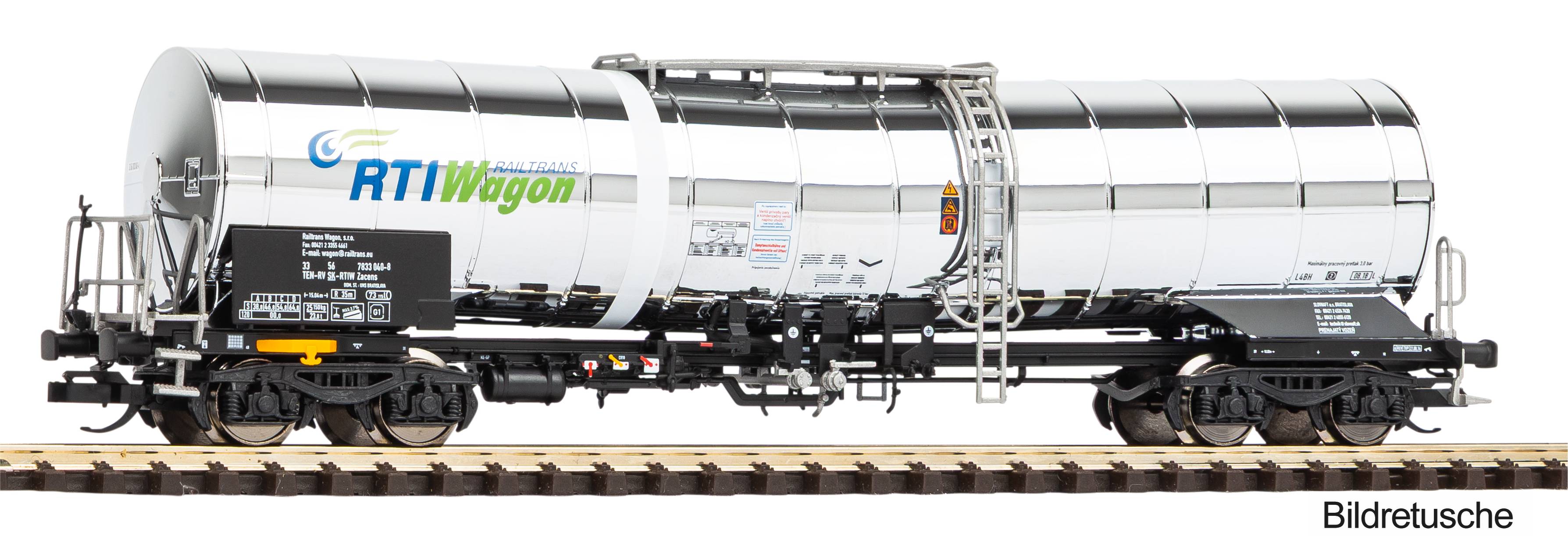 Neuheit 2026: Chemiekesselwagen in Chromoptik mit RTI-Schriftzug für TT Modelleisenbahn Epoche VI