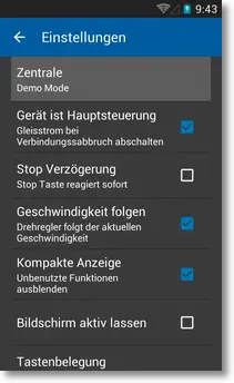 6. Die App kehrt nun ins Einstellungsmenü zurück. Drücken Sie noch einmal „Rückgängig“. Nun sollten Sie in Ihren Führerstand zurückkehren, von dem aus Sie wieder wie gewohnt Ihre Anlage steuern können.