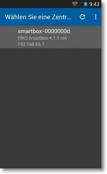 5. Unter der Vorraussetzung, dass die WLAN-Verbindung hergestellt wurde, sollte nun Ihre PIKO SmartBox® angezeigt werden. Wählen Sie diese an.