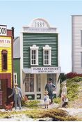 The large gates at the front of the building can be opened and closed. A real bell hangs in the tower of the firehouse. The Pleasantown Collection buildings can be easily assembled and disassembled due to a special plug-in construction method.