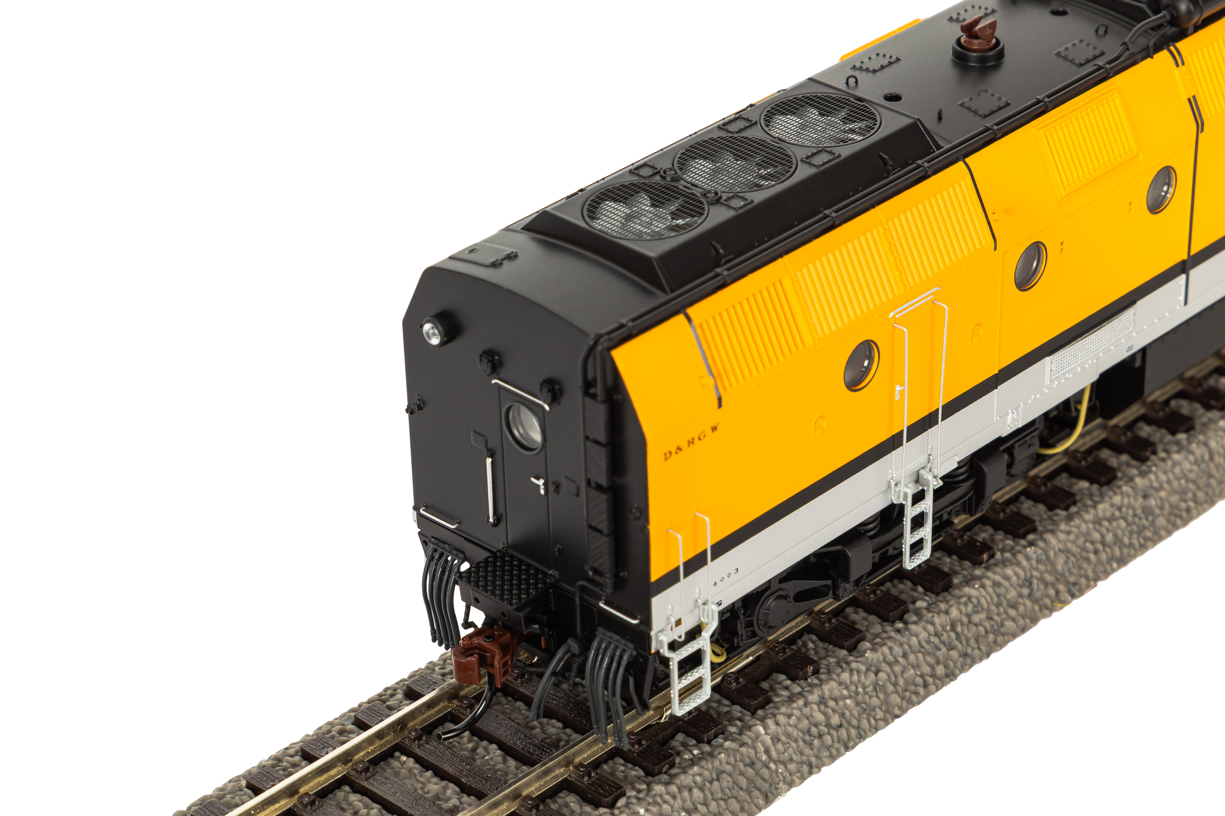Novelty 2026: Diesel locomotive KM 4000 in the version of D&RGW 4003 in a modified form. The original SP KM 4000 locomotives began their life as almost identical triplets. Over the years, however, they were modified and became clearly distinguishable from one another. The faithful PIKO reproductions show the locomotives as they appeared in the mid-1960s, taking into account structural and color-specific details. These include side air intake grilles, filter boxes, and roof vents, as well as exposed exhaust systems with flap valves. The locomotive also accurately reproduces the color details of the SP 9100.