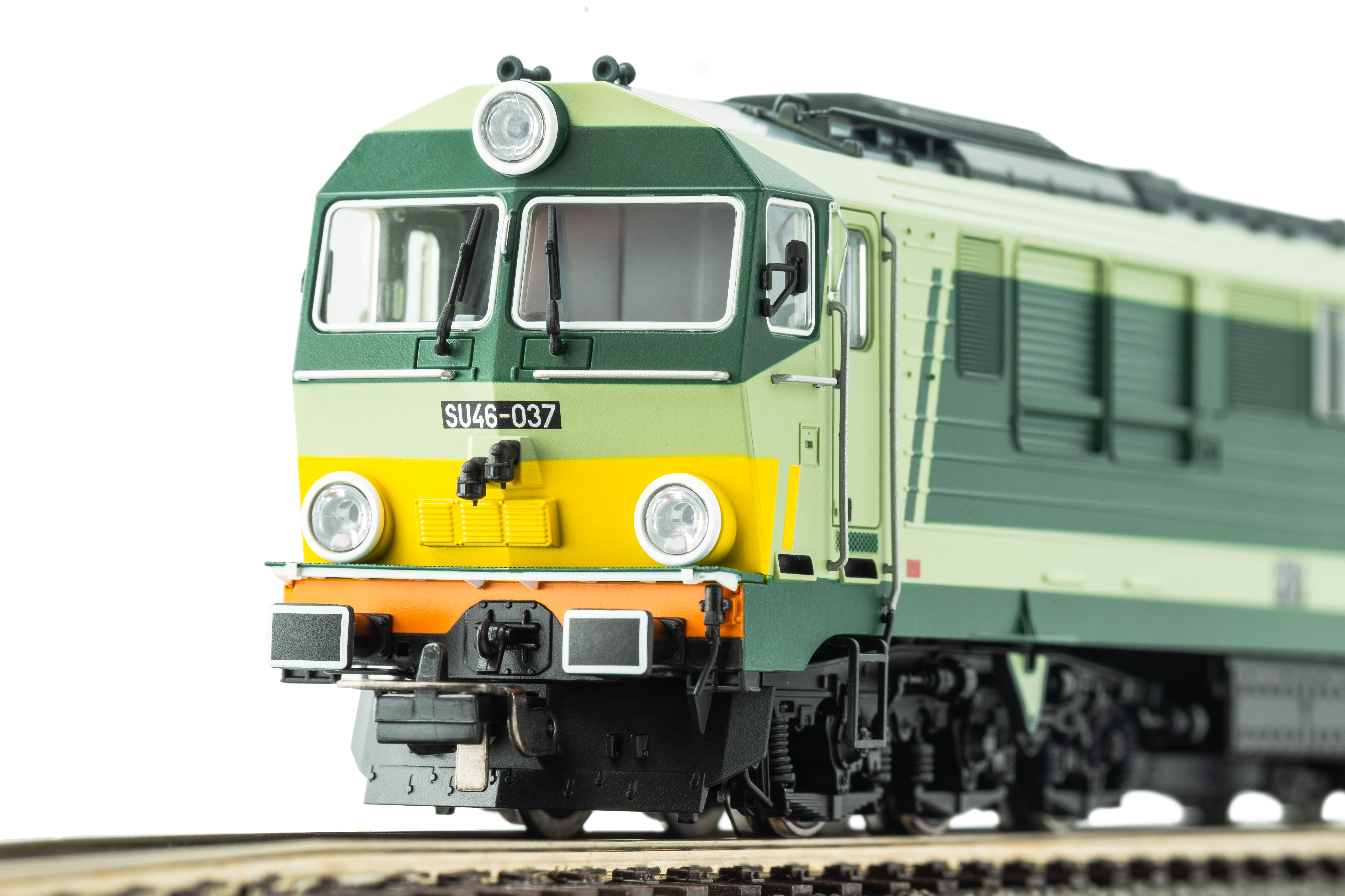 Novelty 2025: After Polands first mainline diesel locomotive, the SP45 series, had proved its worth, the Polish state railways decided to procure a more powerful version that could also be used in heavy, high-quality passenger train services. The innovations of the new PKP diesel locomotive also included electric train heating and the production-optimised shape of the drivers cabs and the locomotive body with the corrugated side walls. After minor teething troubles with the prototype locomotives SU46-001 and SU46-002 had been recognised and cured, the Poznan locomotive construction company Cegielski delivered a further 50 SU46s from 1976 to 1977.