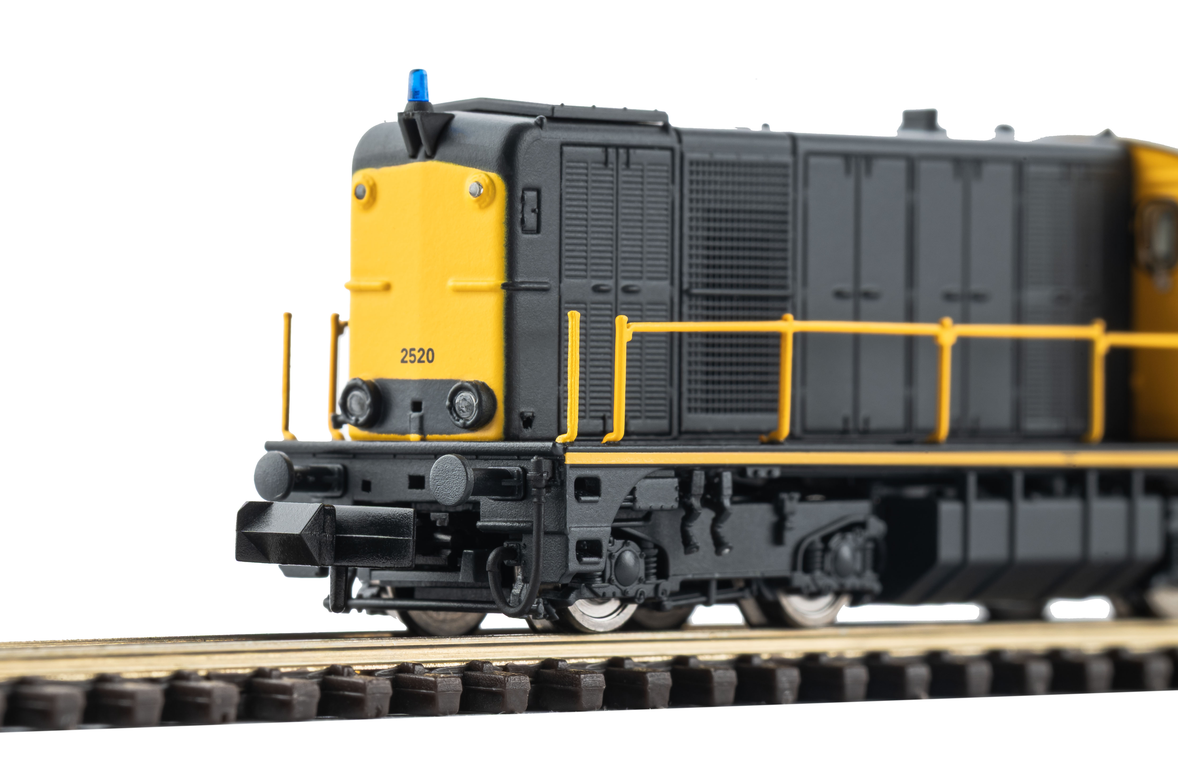 Novelty 2025: Novelty 2025: Grey-yellow version of the 2400 with rotating beacon in Era IV. The locomotive body and the bogies have fine engravings. The finely etched metal railings round off the visual impression perfectly. The model is factory-equipped with a sound decoder.