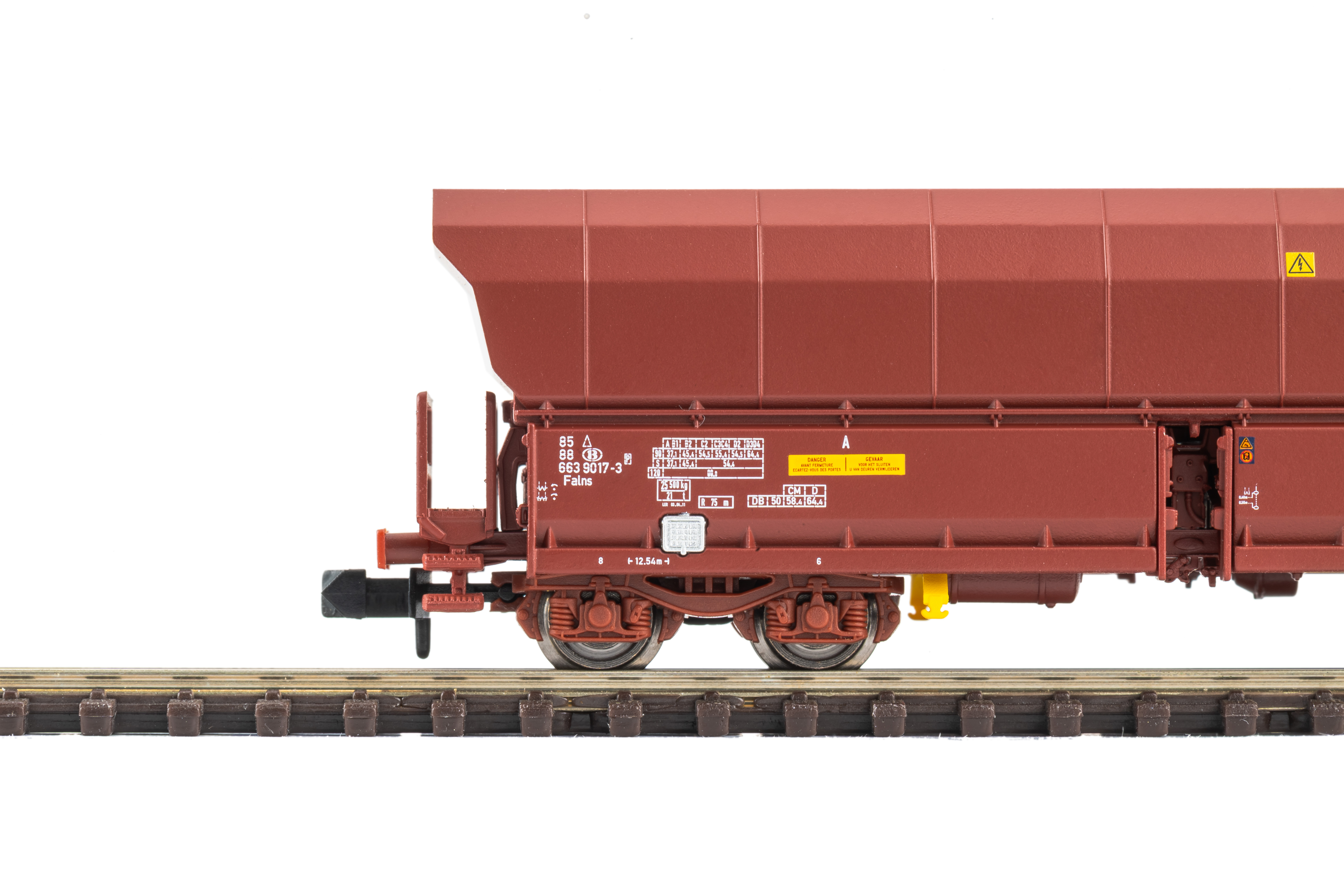 SNCB Falns bulk goods wagon in true-to-life design | Suitable for N scale | High-quality paintwork and fine details | Sharply engraved spring assemblies | Color accents and brakeman""s platform | Optimal running characteristics for realistic freight train operation