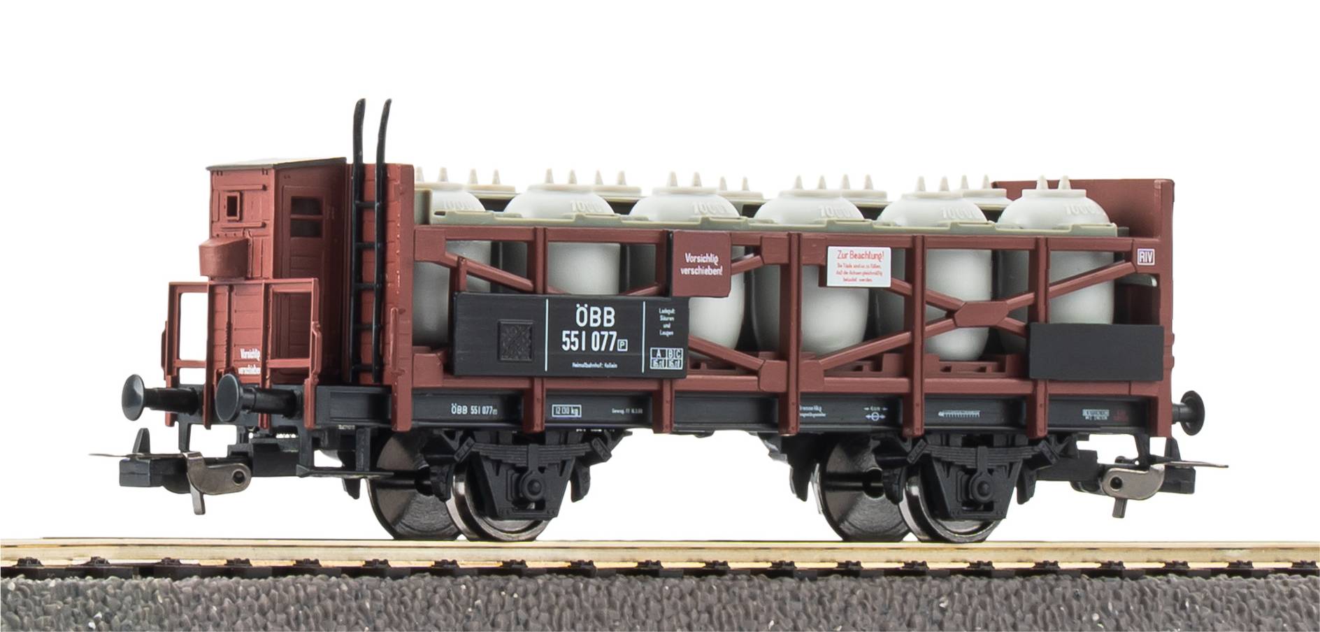 Novelty 2026: Acid pot wagon of the ÖBB with prototypical paintwork and lettering in Era III. The wagon features a brakeman’s cabin and impresses with numerous details and separately applied parts