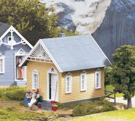 Mr. Lewis has lived alone with his two cats in the small wooden house for a long time. The two cats, Minz and Maunz, are particularly fond of the gable decoration. They can jump over the wooden wall onto the ornament and from there watch everything that is happening around the house. The doors of the cottage are movable.